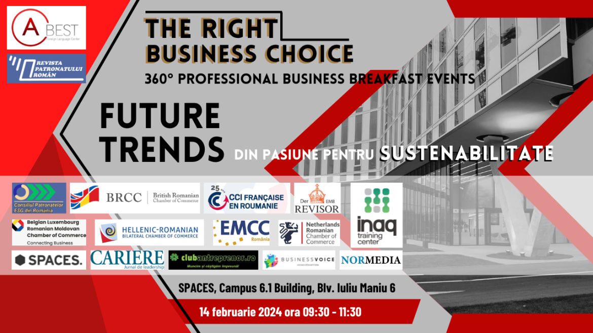 „Future Trends. Din pasiune pentru sustenabilitate” continuă seria de evenimente „360 professional business breakfast events” ca parte din proiectul de comunicare „The Right Business Choice” – serie de evenimente business offline, ajunsă la ediția cu numărul 5 și serie de emisiuni video difuzate online, care au ajuns la ediția cu numărul 30.