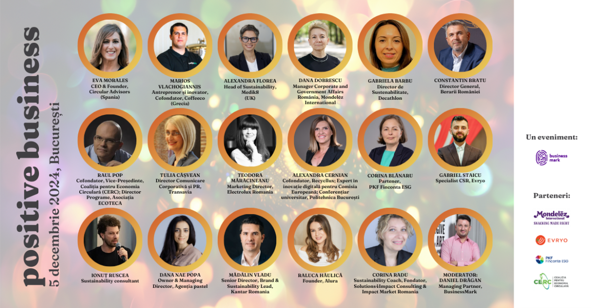 Pe 5 decembrie 2024, va avea loc la București o nouă ediție a evenimentului „POSITIVE BUSINESS – a talk about ESG, sustainabilty and positive impact in business”, eveniment organizat de BusinessMark, în cadrul căruia specialiști din domeniu vor explora modalitățile prin care companiile pot genera impact pozitiv, răspunzând în același timp cerințelor legislative și așteptărilor în creștere ale stakeholderilor.